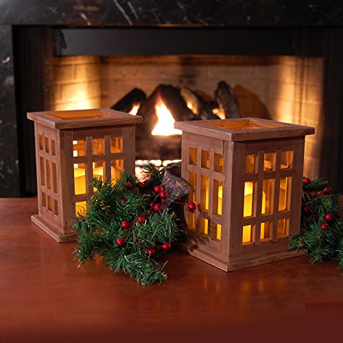 -. Title : LumaBase 95402 2 Count Wooden Lanterns with LED Candles, Natural Brown