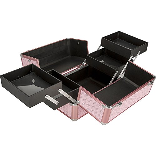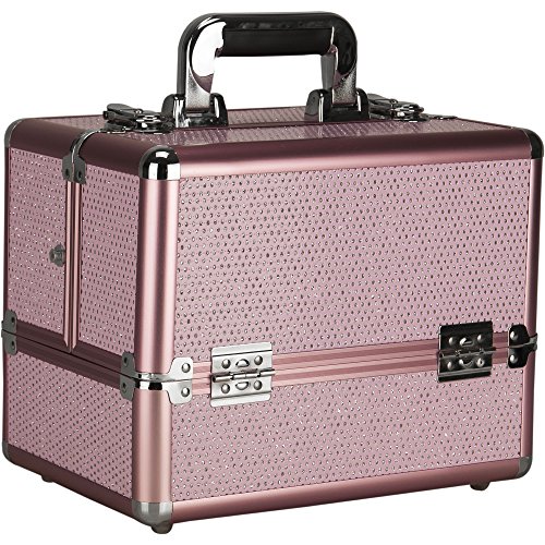 Sunrise 4 Tiers Expandable Trays Makeup Train Case Shoulder Strap Key-Lock, Pink Krystal