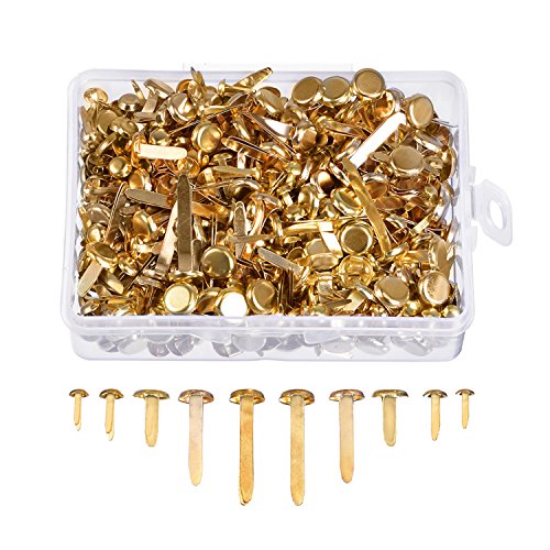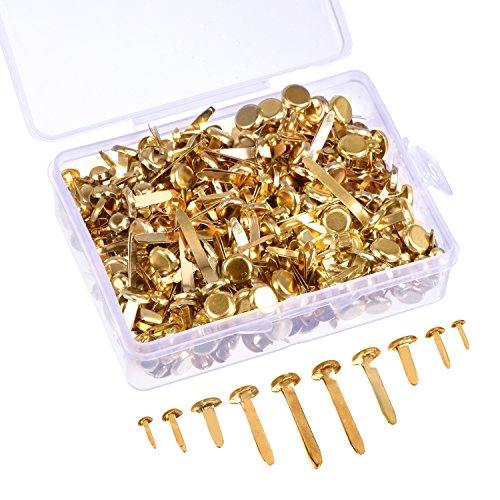 Willbond 500 Pieces Paper Fasteners Assorted Sizes Round Brad Brass Plated Fasteners Metal Brads with Storage Box
