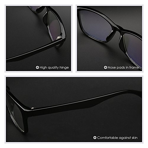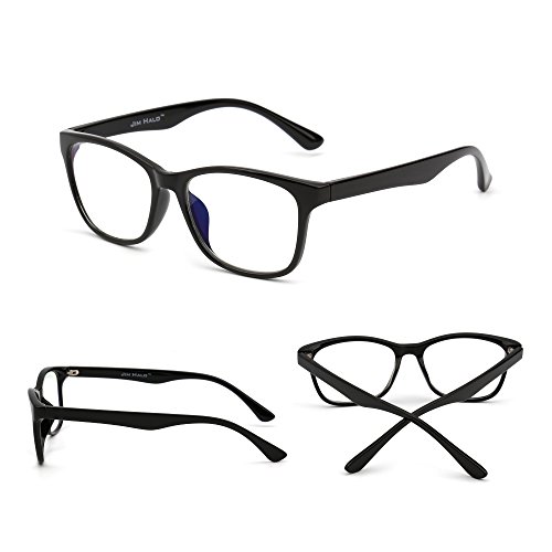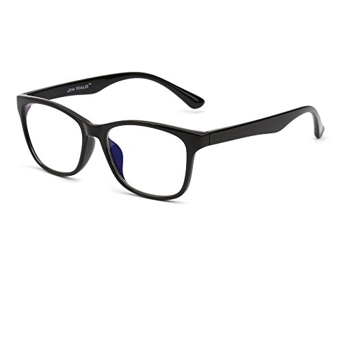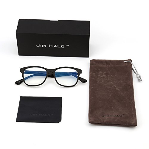 -. Brand : Jim Halo -. Feature : Protect your eyes from harmful blue light by electronic devices (such as computer, TV, smartphones) / Quality plastic frame is comfortable against the skin / Retro wayfarer frame fit both men and women / Perfect for office and home,keep a pair at your desk. / 30 Day Money Back Guarantee: All Jim Halo customers enjoy 30 Day Money Back Guarantee. Customers can return and get refunded in case the purchasing is not satisfactory for any reason -. IsAdultProduct : 0 -. Label : Jim Halo -. Manufacturer : Jim Halo -. ProductGroup : Health and Beauty -. ProductTypeName : PERSONAL_CARE_APPLIANCE -. Publisher : Jim Halo -. Studio : Jim Halo -. Title : Blue Light Blocking Computer Reading Glasses, Reduce Eye Strain Anti Glare Clear Lens Video Eyeglasses Men Women UV400 Protection
