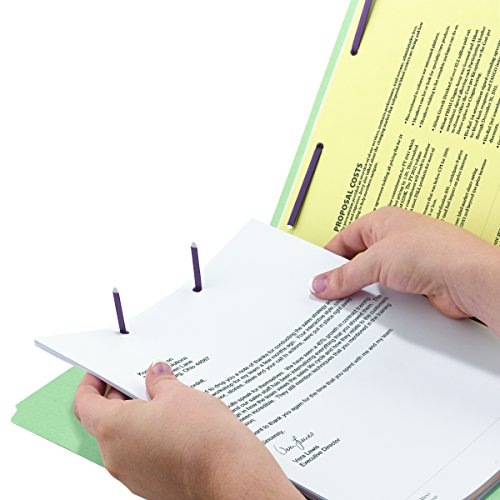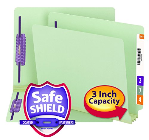 Smead End Tab Pressboard Fastener File Folder with SafeSHIELD Fastener, 2 Fasteners, 3" Expansion, Letter Size, Gray/Green, 25 per Box (34725)
