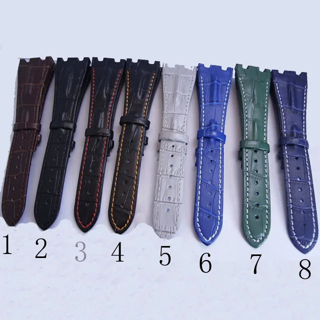 | [해외]28 미리메터 * 18 미리메터 AP 손목, 8 스타일, 블랙 브라운 블루 정품 가죽 시계 스트랩 벨트 팔찌 폴딩 버클 및 로고 |