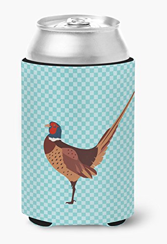 Caroline's Treasures BB8104CC Ring-Necked Common Pheasant Blue Check Decorative, Can Hugger, Multicolor