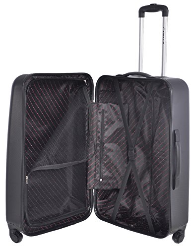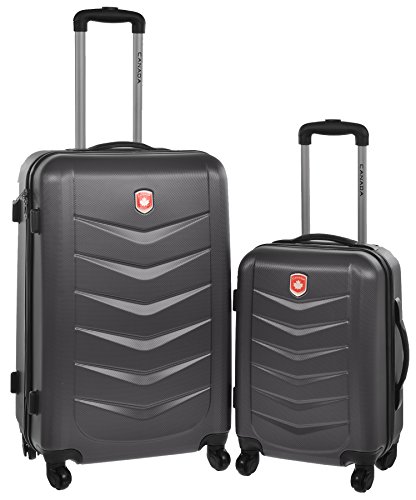 Product Description 2 piece suitcase luggage set includes a 1 suitcase for checked baggage and 1 for carry on . Large suitcase dimensions: 17 inches X 11 inches X 26 inches; Small suitcase dimensions: 13 inches X 8 inches X 18 inches. 18 inch suitcase is certified carry on. 4 multi-directional wheels for easy travelling. 5 year manufacturer warranty. 0