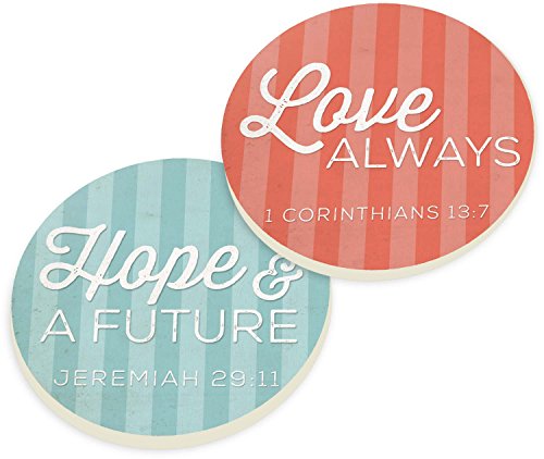 Hope Always, Hope and a Future Scripture 2 Piece Ceramic Car Coasters Set