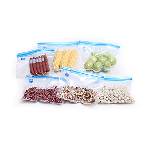 Preup 5 Pcs Plastic Food Saving Reinforced Vacuum Bags for Fish Vegetables Fruit