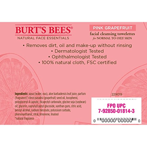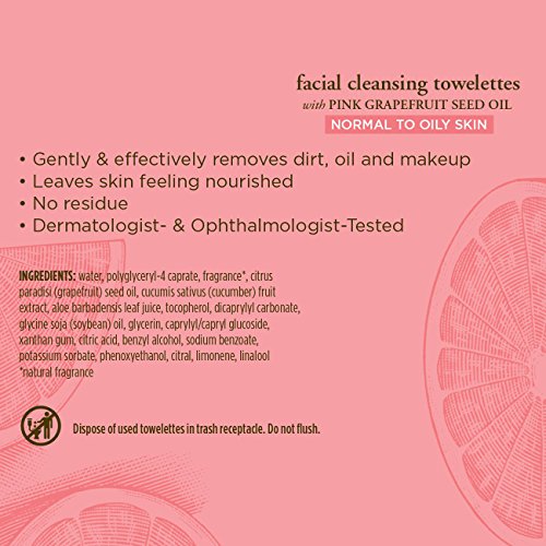 Burt's Bees Facial Cleansing Towelettes, Pink Grapefruit, 30 Count