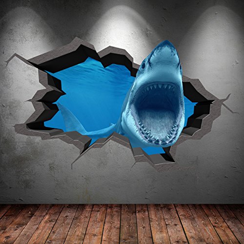 -. Title : UNDERWATER CRACKED CAVE AQUARIUM FISH SHARK 3D WALL ART STICKER BOYS DECAL MURAL NEW 15
