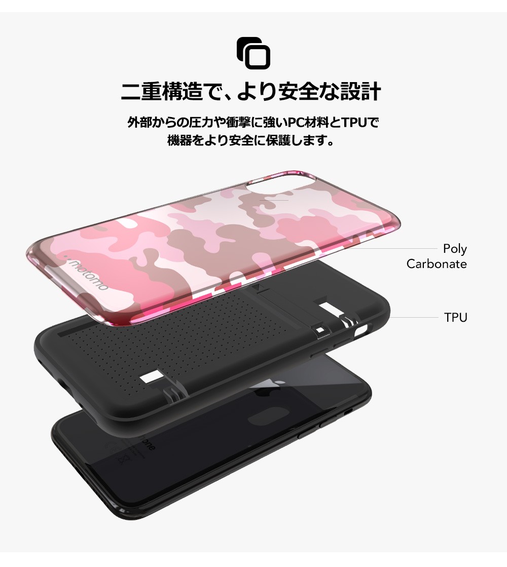 | 商品説明 | ポリカーボネートカバーと柔軟性のあるTPU素材を組み合わせた一体型ケースで衝撃と落下から機器をしっかり守ります。 外部からの圧力や衝撃に強いPC材料とTPUで機器をより安全に保護します。 |