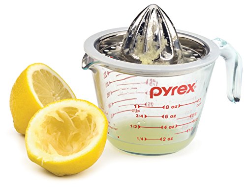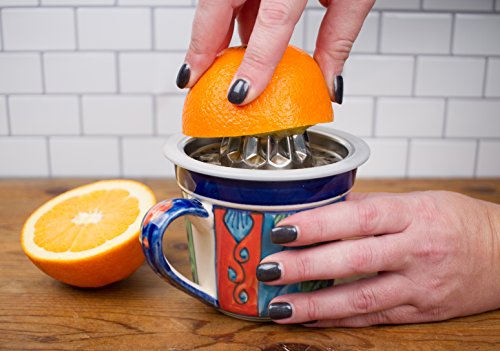 Designed to sit on top of a 1 or 2 cup glass measuring cup for quick and easy juicing of lemons, limes, and oranges but also gist 4-1/2" to 4-3/4" dia. cup or bowls like our Endurance Prep Bowls. The silicone band holds the juicer securely in place and is removable for easy cleanup. Made of dishwasher safe stainless steel. Patent pending.Feature