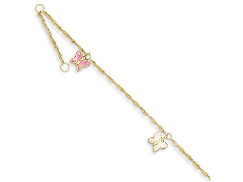 -. Title : 10 Inch 14k Yellow Gold Adjustable Enameled Butterfly Anklet