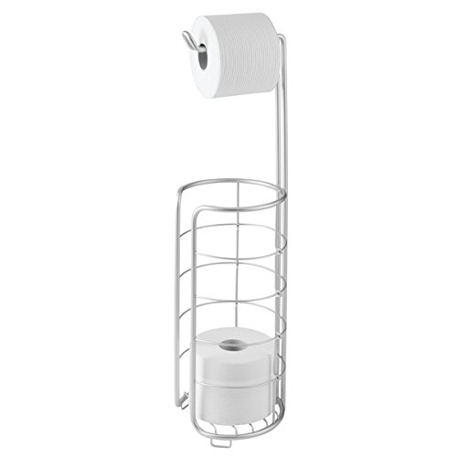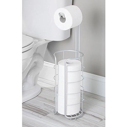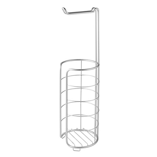 InterDesign Metro Rustproof Aluminum Free Standing Toilet Roll Holder – Dispenser and Spare Roll Storage for Bathroom, Silver