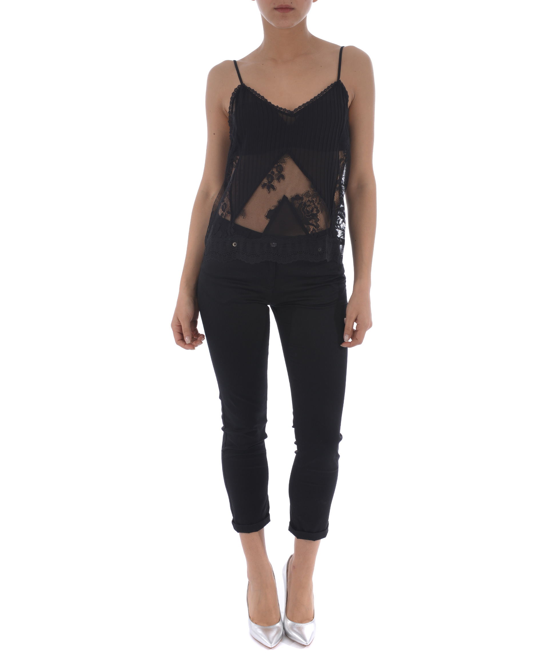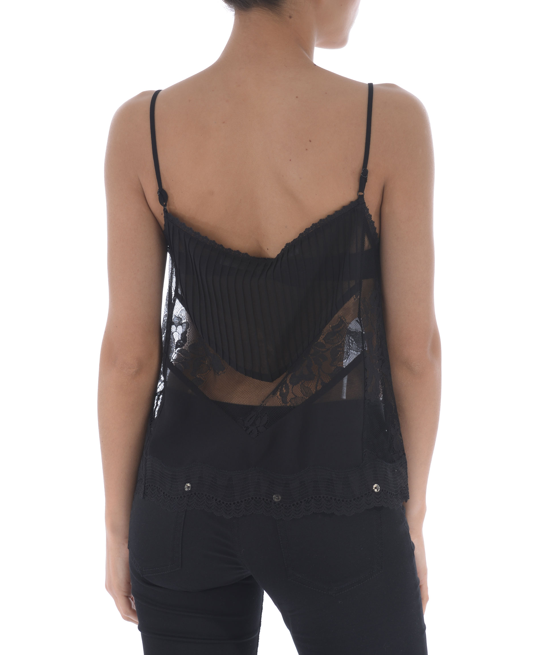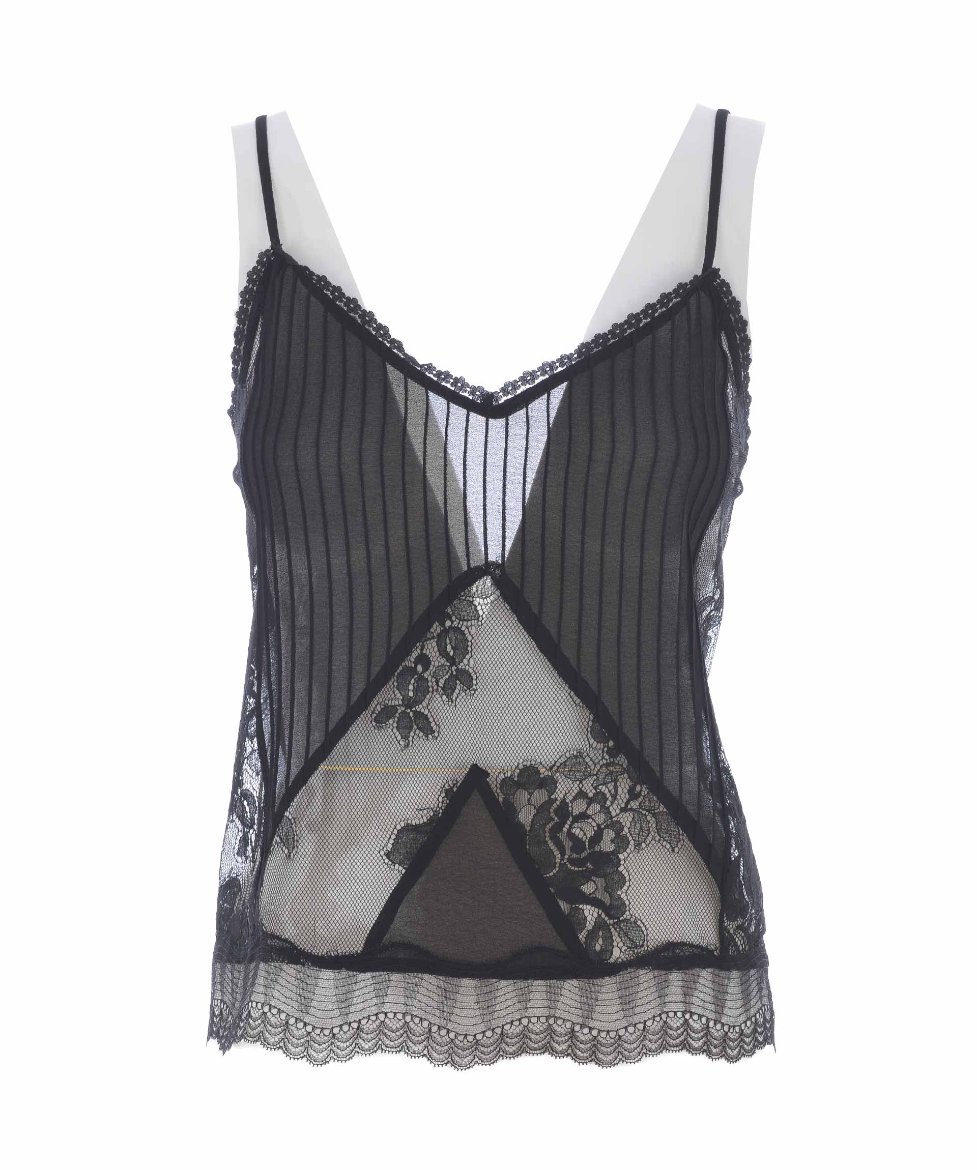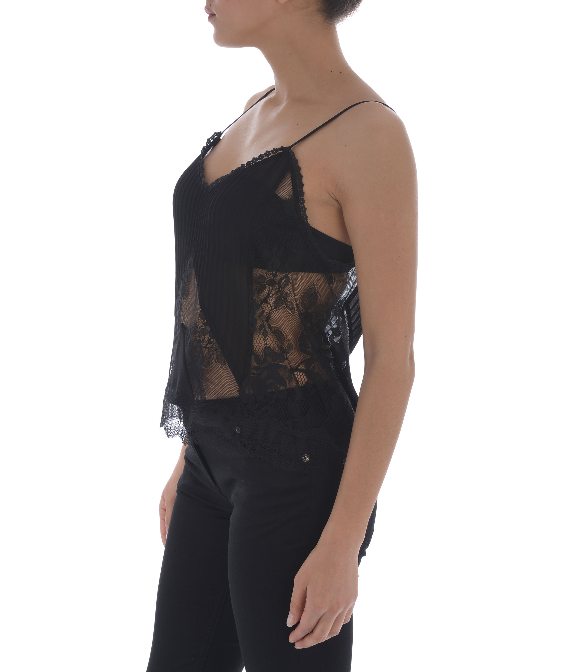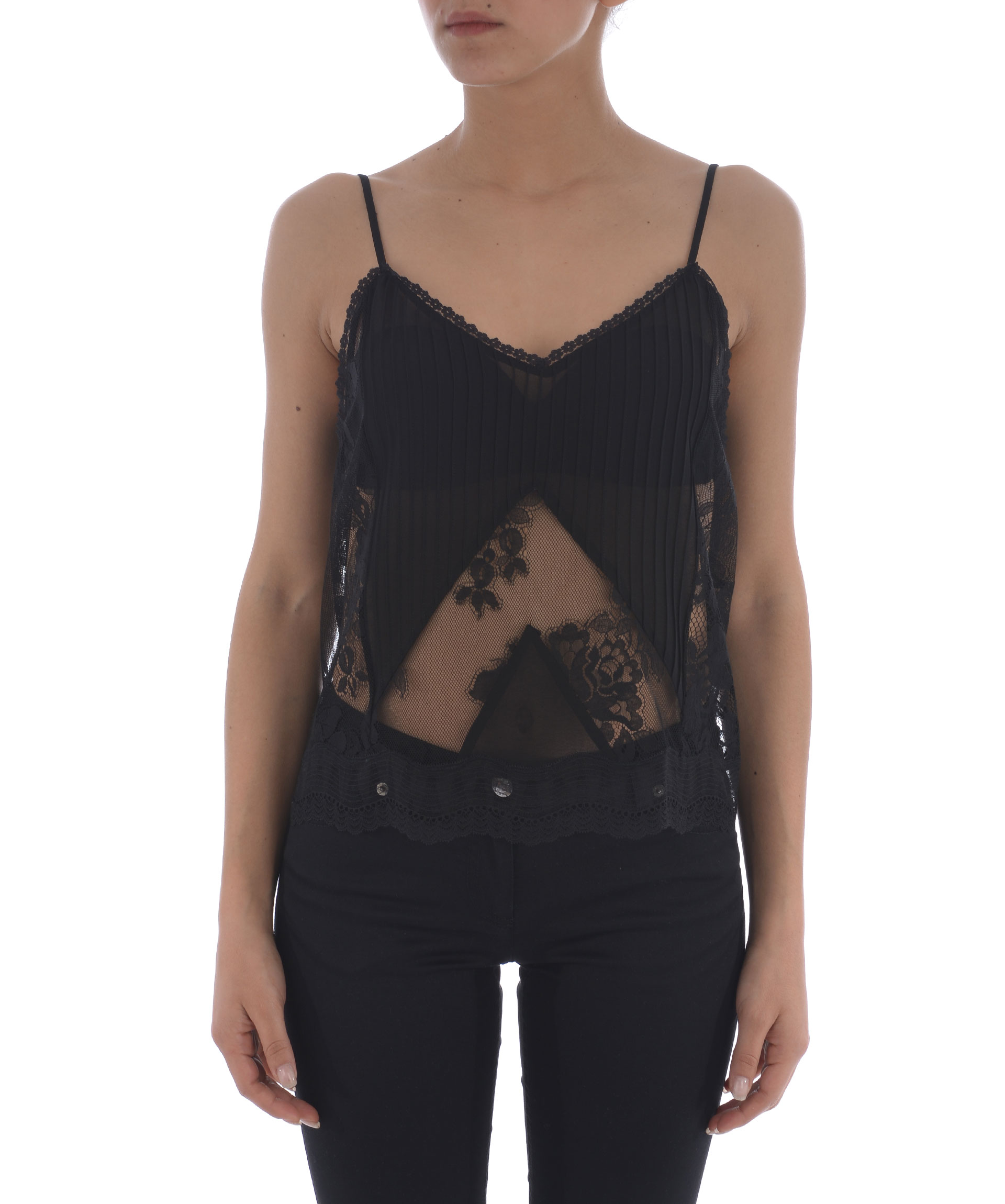Top MCQ Alexander McQueen in georgette e pizzo Nero. Spalline sottili regolabili. Non foderato. Misura in foto 40 54% poliammide, 46% cotone 100% poliestere