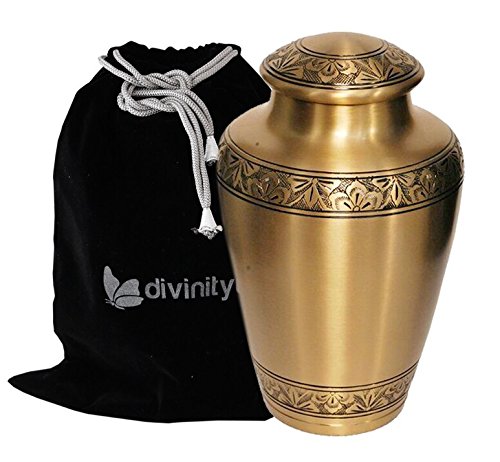 Athens Gold Brass Cremation Urn for Human Ashes by Divinityurns - Adult Funeral Urn Handcrafted - Affordable Urn for Ashes - Large Urn Deal
