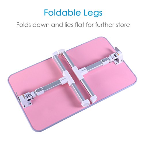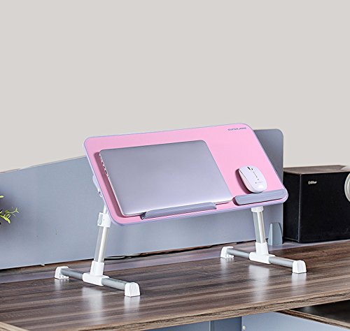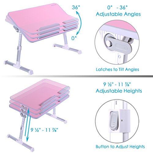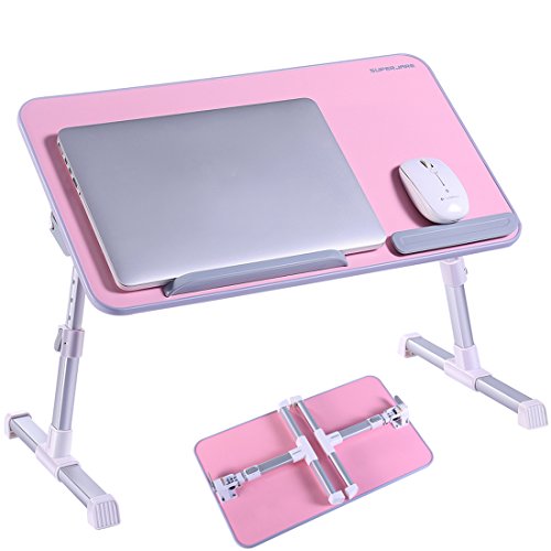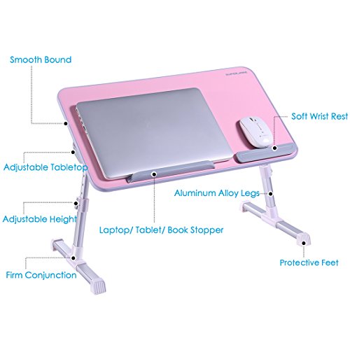 -. Title : Portable Laptop Table by Superjare | Foldable & Durable Design Stand Desk | Adjustable Angle & Height for Bed Couch Floor | Notebook Holder | Breakfast Tray - Pink