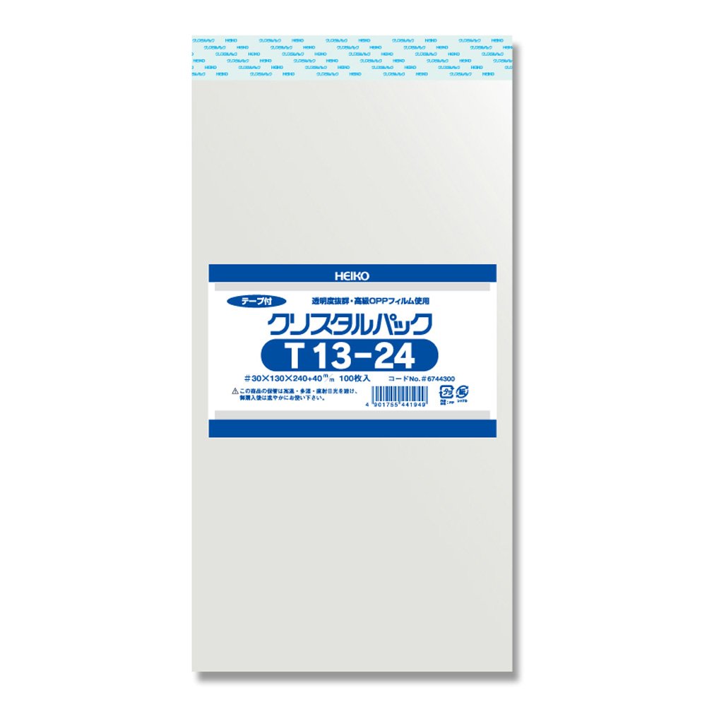 1枚サイズ:巾130×高240×テープ部分40mm 商品特徴:封のできるテープ付き。帯電防止加工。 内容量:100枚入 素材:オリエンテッドポリプロピレン(OPP)