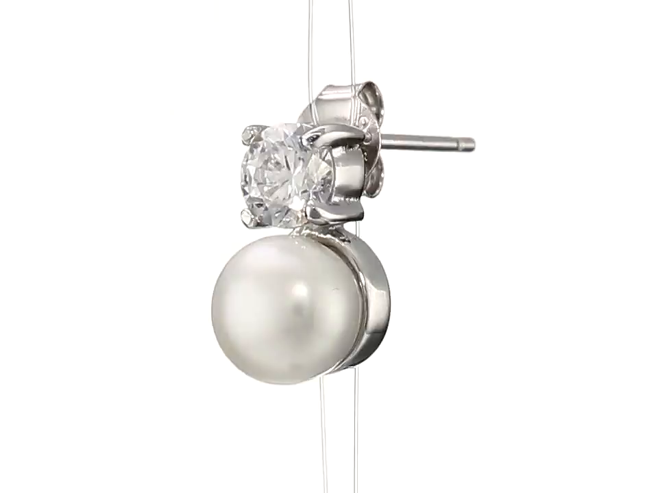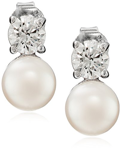 Sterling Silver White Button Freshwater Cultured Pearl and Swarovski Zirconia Earrings
