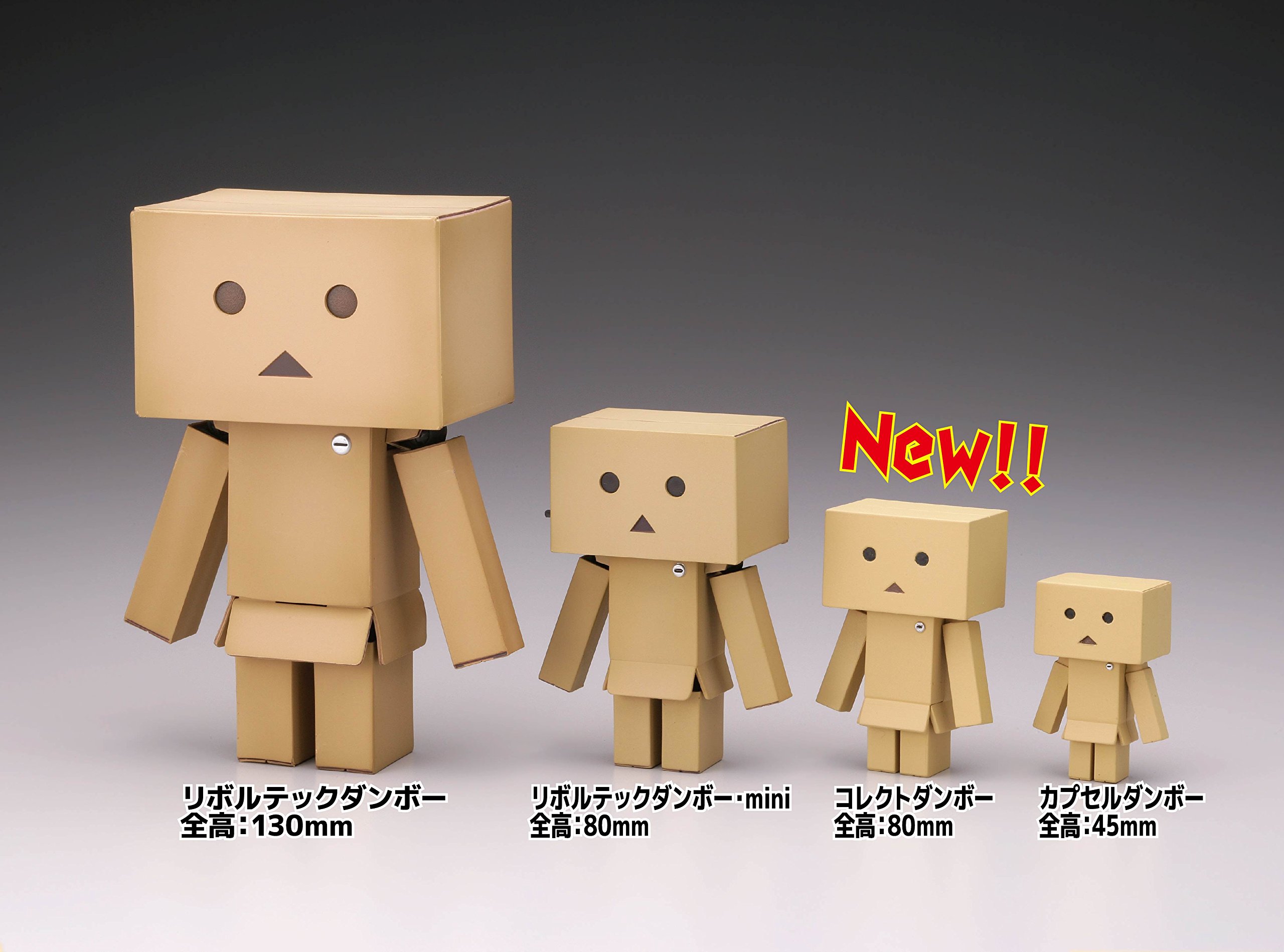 A new danba figure set with familiar normal design, "Collect Danbo (60 mm size)" developed as a series of different concepts and "Capsule Danbo (45 mm size)" developed as a capsule toy,
