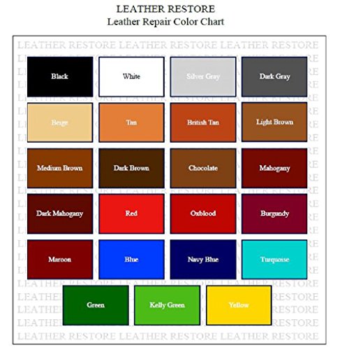 Leather goods are expensive, and you don’t want to pay even more money for replacement or for a professional service company. Save time and money and do it yourself with Leather Restore’s Leather Repair Kit! Easily repair cigarette burn holes in car upholstery, cat scratches on couch, cuts on saddle, cracked boots, ripped furniture and much more! Our Leather Repair Kit repairs all types of leather and is available in a large variety of colors. And best of all, no mixing and matching colors is needed since we have lots of colors available to you. The designed for leather adhesive and color compounds are made to blend well with surrounding materials. The results: a durable, strong and flexible leather like finish. Simply fix the damage, then re-color, and your restoration is as good as new. And best of all, no complicated and unsafe heat cure method here, our formula air dries fast! This is the #1 solution for restoring your leather goods! Leather Repair Kit includes: 1 bottle color compound (1 ounce), leather adhesive, sandpaper, backing fabric, vinyl test piece, spatula & complete easy to use directions. Made in USA. 100% Satisfaction Guaranteed!