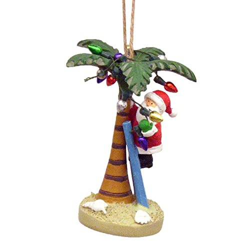 -. Feature : Santa Decorating a Palm Tree Christmas Ornament / Holiday Lights are decoration only, they do not light up / Approximately 3.75 Inches x 3 Inches x 1.5 Inches / Resin / Hand Painted