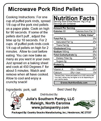 -. Feature : Microwave or bake these amazing large pork rinds / Jumbo or also known as Chicharrones / 70% less fat than bagged fried pork rinds / Zero carbohydrates / No preservatives or MSG