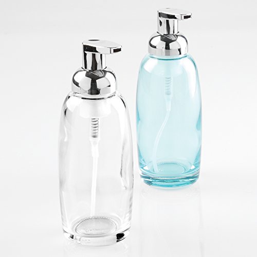 - Title : mDesign Glass Foaming Soap Dispenser Pump 2pc Bathroom Accessory Set - Blue/Chrome, Clear/Chrome