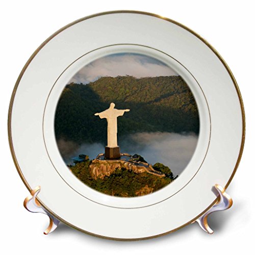3D Rose Statue of Jesus on Corcovado Mountain-Rio De Janeiro Porcelain Plate, 8"