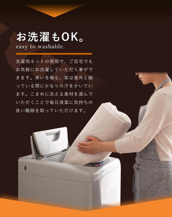 ●ご家庭の洗濯機で丸洗いできるので、しっかりお手入れができ清潔にお使いいただけます。