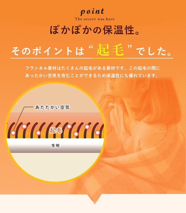 ●平たい繊維で編まれたフランネル生地は、マイクロファイバーと比べてとってもなめらか。