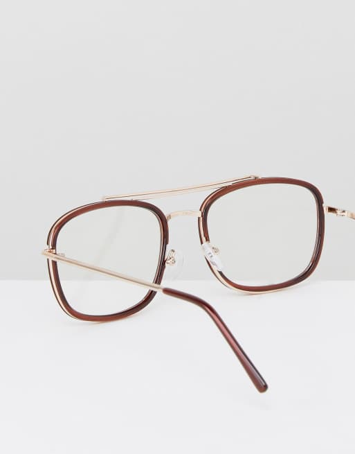 ASOS Clear Lens Aviator Glasses In Crystal Brown