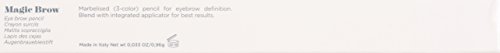 -. Feature : Built-in brush to blend color and groom eyebrow hair / Tri-color lead delivers a natural, multi-purpose color effect / Natural oils add glide and natural sheen / Unique, eyebrow kit in a pencil / Highly-pigmented, marbleized colors allow for natural brow hues / Beautifully enhances and shapes eyebrows / Rich, creamy formula is easy to apply