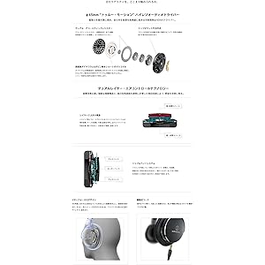 ■45mm トゥルー・モーション ハイレゾドライバー。駆動力を最大限に高め、あらゆる音源を高精細に描き出す新開発45mmドライバー。高駆動設計ダイヤフラム&ボビン巻きショートボイスコイル。各音域のバランスを調整するデュアル・アコースティックレジスター。音の歪みを抑えるトップマウントPCB方式。■デュアルレイヤー・エアコントロールテクノロジー。音響効果の高い強靭な積層構造と、音の空気経路を緻密に計算した独自技術により原音を忠実に再生。不要振動を徹底的に抑制するレイヤードメタル構造。低中高域の特性を向上させるトリプルベントシステム。