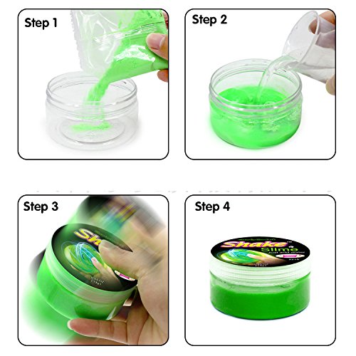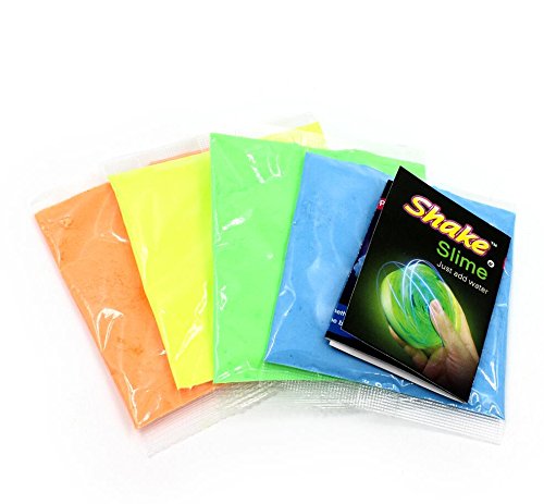 SHAKE SLIME CONTAINS: Four different colors of slime in one pack and an instructional guide.