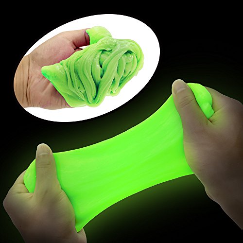 GLOWS IN THE DARK : Place your slime under direct sunlight or lamp light for about 2 hours to make it glow. Turn off your lights and you'll see your slime shine bright.