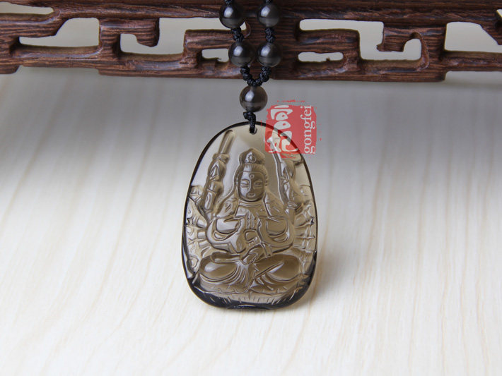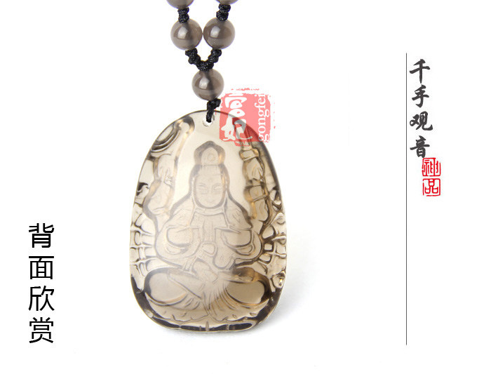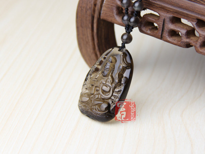 开光 冰种黑曜石千手观音吊坠 生肖鼠本命佛