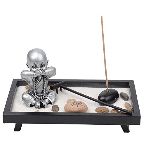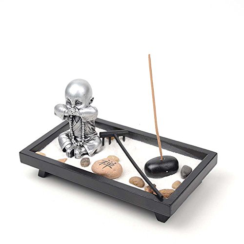 - Includes:wooden tray,monk statue,incense burner holder,zen stone,rake,sand and rocks;