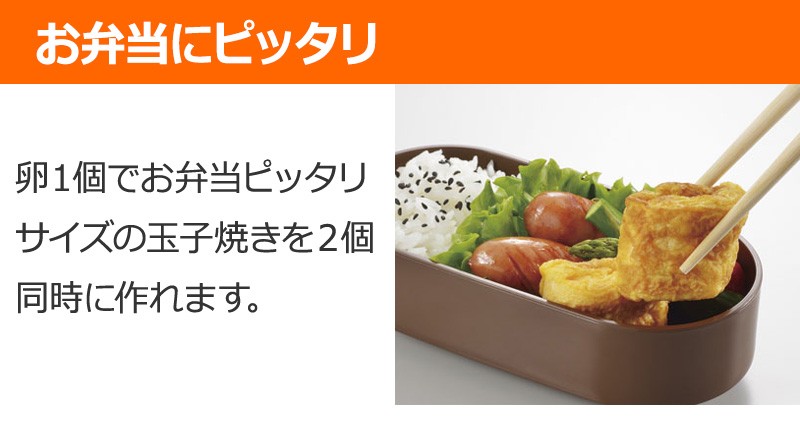 お弁当にぴったりなサイズの玉子焼き2個」を卵1個で一気(1回)に作ることができます。