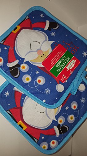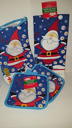Jolly Santa Christmas Kitchen 4 Piece Linen Set: 2 Pot Holders, Oven Mitt, Kitchen Towel