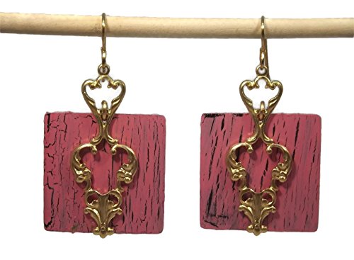 -. Title : 2" Hand Crackle Painted Pink Fancy Princess Dangle Drop Earrings, OOAK, One of a Kind