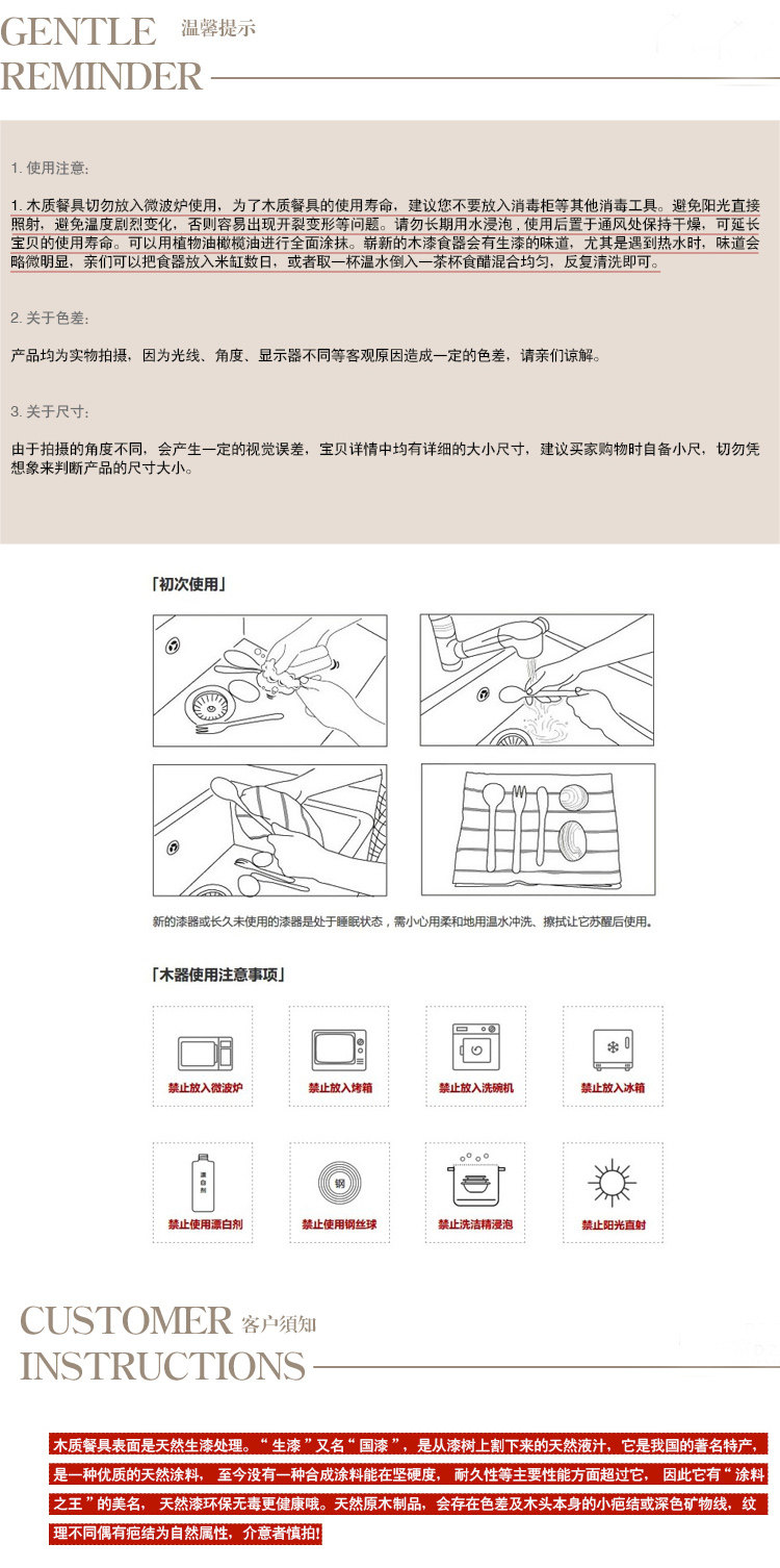 [Tips]: a newly purchased wooden tableware, please do not use boiling water or hot.