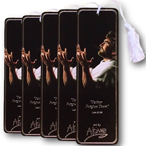 Deluxe 5 Bookmark set - featuring Jesus praying in the Garden of Gethsemane prior to His Crucifixion featuring - Father Forgive Them - painting by Akiane Kramarik