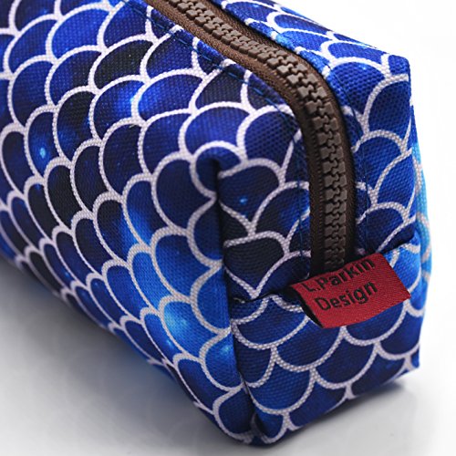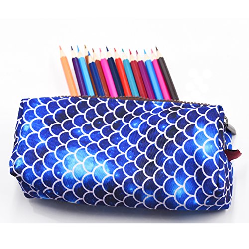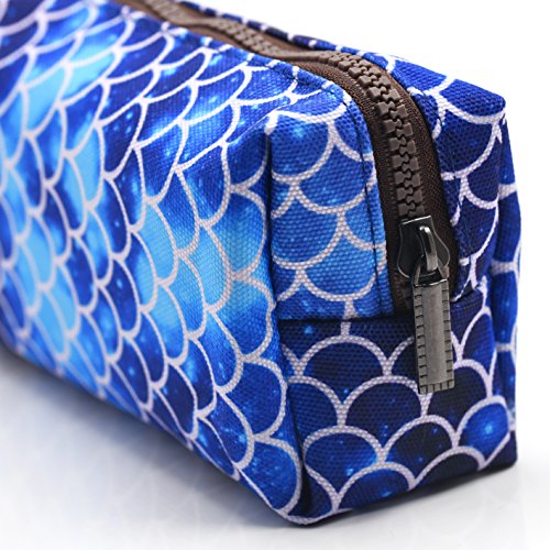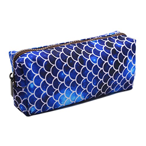 LParkin Mermaid Students Super Large Capacity Canvas Pencil Case Pen Bag Pouch Stationary Case Makeup Cosmetic Bag (Deep Blue)