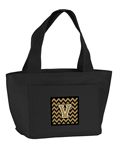 Caroline's Treasures CJ1050-VBK-8808 Letter V Chevron Black and Gold Insulated Lunch Bag, Large, Multicolor