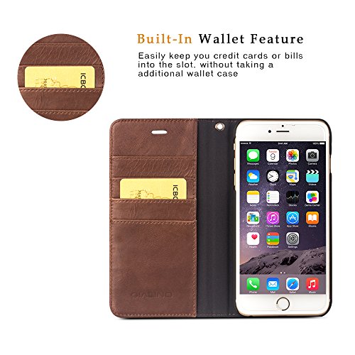 -. Feature : QIALINO Specially designed for 4.7" iPhone 6 ,6s only / Genuine leather cover, durable and nice protection against dirt, Scratch and Shock / Built-in Kickstand fuction, make your viewing Comfortable and free / Compact Wallet style, with strap and card slots design ( for your ID, cards and cash ) / Precise cut-out, and all buttons are easy to access.