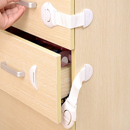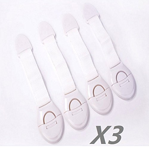 12 Adjustable Child Safety Locks Latches Straps to Baby Proof Cabinets, Drawers, Appliances, Toilet Seat, Fridge(White)