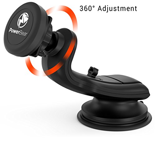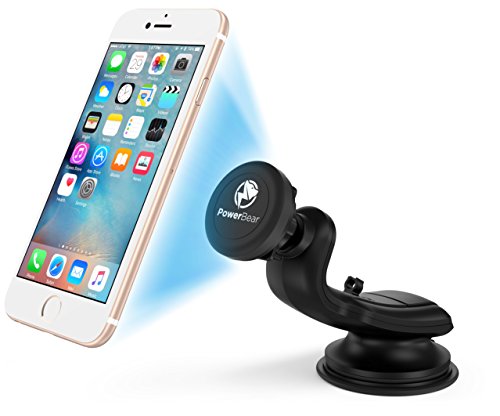 PowerBear Mobile Phone Windshield Car Mount | Magnetic Car Phone Holder | Hands Free Cell Phone Car Mounts | Mobile Car Dock - Black [24 Month Warranty]