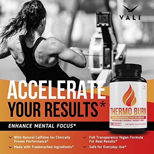 -. Feature : HEALTH, HAPPINESS, & PERFORMANCE - We started VALI because we want to know exactly what's inside our supplements and we want supplements that give real results without the marketing fluff other companies use to charge exorbitant P.R.Ices. Nothing proP.R.Ietary, clean highest quality ingredients at a great value, transparent formula, 3rd party testing for purity, and a commitment to above and beyond customer service. This is our promise to you! ALL our products come with a 100% money back guarantee. / SCIENTIFICALLY FORMULATED TO BURN FAT - Thermo Burn is a thermogenic fat burning supplement for men and women that helps you shed fat, lose weight, control appetite, and increase energy. Every carefully selected ingredient is included in the right effective dose, and supported by clinical trials to work, period, so you can hit your weight loss goals, cut excess belly fat, reveal muscle, and get the body you want, all while preserving muscle strength you work so hard to gain. / PREMIUM INGREDIENTS THAT WORK - We left out ingredients that make promises but don't function to burn fat, and we include top quality all natural caffeine because caffeine is a clinically proven and trusted performance enhancer, appetite suppressant, metabolism booster, and fat burner that works. Thermo Burn also includes: Vitamins B6 and B12, Trademarked Bioperine® Black Pepper and Capsimax® Capsicum Fruit Extract, Green Tea Leaf, Garcinia Cambrogia, and N-Acetyl L-Carnitine. / ENERGY & APPETITE CONTROL - No fads or gimmicks. Boost your natural energy levels, break down body fat, and manage weight by increasing your metabolic rate and fighting the urge to overeat. Thermo Burn contains no proP.R.Iety unknown ingredients. It's free of questionable or banned substances. Vegan, gluten free, Non-GMO, & vegetarian capsules. Contains zero artificial flavors, additives, or preservatives. PROUDLY made in the USA in an eco friendly FDA registered facility under GMP guidelines. / RESULTS YOU CAN SEE & FEEL - Support your healthy diet and exercise regimen with a powerful thermogenesis supplement that's safe and guaranteed to get you faster results. You'll see accelerated rapid weight loss and more muscle definition, while feeling more energetic with a lift in mood. Take Thermo Burn in the morning on your way to work to improve cognitive focus and enhance mental concentration during the day, or use it as a convenient pre workout before exercising or going to the gym.