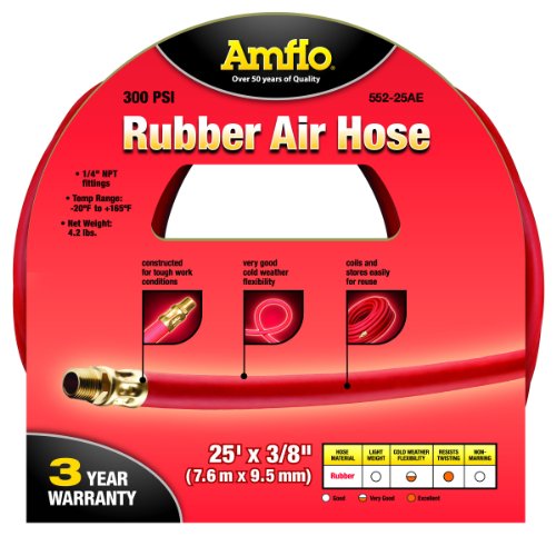 Amflo 552-25AE Red 300 PSI Rubber Air Hose 3/8" x 25' With 1/4" MNPT End Fittings