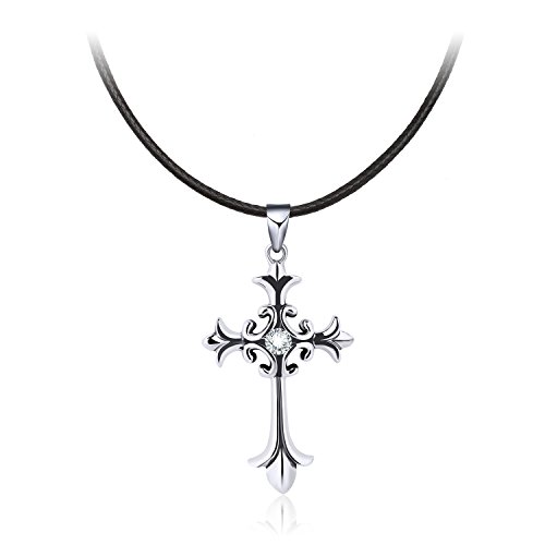 -. Title : ネックレス·メンズ&レディース シルバー925 ネックレス ハロウィン コスプレ 両用 ジルコン レザー ♛J.Rosée♛ 「神の宣告」バレンタインデー ユニセックス クロス ロープ