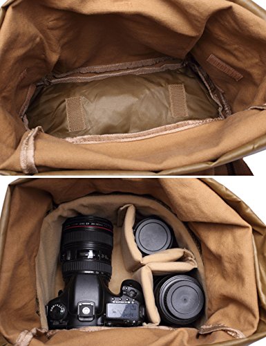 Ample interior storage: interior camera bag with Padded divider system for on-the-go organization can protect your camera and lenses well and it is detachable, you can take it out and use the main compartment to hold your clothes when travelling.